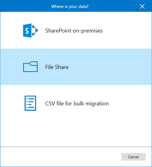 Następnie w kolejnym kroku wybieracie skąd chcecie kopiować swoje dane. Warto dodać, że Microsoft rozwija to narzędzie i wkrótce będą dostępne nowe opcje w tym miejscu. W moim przypadku wybieram „File Share”